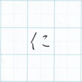 そのため「に」の右側の二本線は数字の「二」と同じように、上を短く、下を長くが基本です。逆に書かないようにしましょう。そして、上下には空きをつくるようにします。